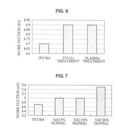 Technical Solution: Sony has developed advanced transparent conductive oxide (TCO) materials, particularly focusing on indium tin oxide (ITO) alternatives for their display technologies. Their approach involves using amorphous indium zinc oxide (a-IZO) with unique sputtering techniques that create highly transparent and conductive films while minimizing indium content. Sony's TCO technology achieves transparency exceeding 90% in the visible spectrum while maintaining sheet resistance below 10 ohms/square[1]. For flexible display applications, Sony has pioneered hybrid structures combining TCO layers with metallic mesh or nanowire networks, creating composite electrodes that maintain conductivity under bending stress. Their proprietary deposition methods enable uniform TCO coating on large-area substrates with thickness variations under 5%, critical for consistent display performance across their product lines[3].