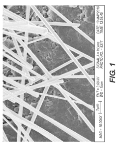 Manufacturing silver nanowires requires adherence to environmental regulations and safety standards. This includes proper handling of chemical precursors, management of waste streams, and implementation of emission control systems. Compliance measures involve monitoring and controlling the release of nanoparticles into the environment, implementing worker protection protocols, and ensuring proper disposal of manufacturing byproducts. Advanced filtration systems and closed-loop production processes can be employed to minimize environmental impact.Expand Specific Solutions03 Quality control and standardization