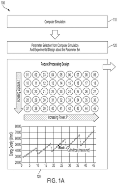 - A computer-implemented process using computational fluid dynamics simulation and design of experiments to model melt pool solidification, generate a multi-factorial parameter space, and build reduced volume samples for mechanical characterization, correlating defect morphology with processing parameters to determine an optimal parameter set.