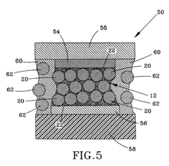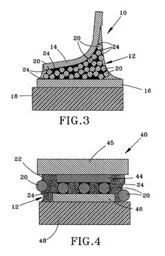 Technical Solution: 3M has pioneered anisotropic conductive adhesives (ACAs) specifically designed for power electronics applications. Their proprietary technology incorporates precisely aligned conductive particles in a polymer matrix, enabling directional electrical conductivity while maintaining insulation in other planes. 3M's power system adhesives feature thermally conductive fillers that simultaneously manage heat dissipation while establishing reliable electrical connections. Their latest generation products utilize hybrid silver-coated ceramic particles that resist electromigration under high current loads. The company's formulations incorporate stress-relieving additives that accommodate the coefficient of thermal expansion mismatch between different power system components, particularly in applications joining silicon carbide or gallium nitride semiconductors to substrates. 3M's adhesives maintain performance integrity even after 1000+ thermal cycles from -40°C to +150°C, making them suitable for demanding automotive and industrial power applications.