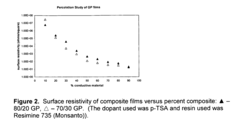- Processing techniques for conductive polymer composites: Various processing techniques are employed to manufacture conductive polymer composites with optimized properties. These include solution blending, melt mixing, in-situ polymerization, and layer-by-layer assembly. The processing method significantly influences the dispersion of conductive fillers within the polymer matrix, which directly affects the electrical, thermal, and mechanical properties of the resulting composite.