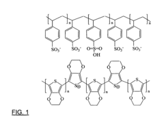 Formulations that improve the environmental stability and durability of conductive polymer inks are crucial for commercial applications. Additives such as stabilizers, cross-linking agents, and encapsulants can protect the conductive polymers from degradation due to oxygen, moisture, UV light, and mechanical stress. These enhancements extend the functional lifetime of printed electronic components and enable their use in more demanding environments.Expand Specific Solutions05 Application-specific conductive polymer ink formulations