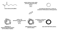 - Manufacturing processes for conductive polymer inks: Manufacturing processes for conductive polymer inks involve polymerization techniques, dispersion methods, and formulation procedures to ensure uniform particle distribution and optimal electrical performance. These processes may include in-situ polymerization, solution blending, or emulsion techniques. Post-processing treatments such as filtering and sonication are often employed to achieve desired particle size distribution and prevent nozzle clogging in printing applications.