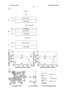 Technical Solution: IMEC has developed cutting-edge transparent conductive oxide technologies focusing on atomic layer deposition (ALD) of zinc tin oxide (ZTO) and hydrogen-doped indium oxide (In2O3:H) for next-generation consumer electronics. Their approach achieves conductivity scaling through precise control of material composition and nanostructure. IMEC's hydrogen-doped indium oxide has demonstrated mobility exceeding 100 cm²/Vs while maintaining transparency above 90% in the visible spectrum. Their patented two-step deposition process combines room-temperature ALD with controlled post-deposition annealing, enabling precise tuning of carrier concentration without compromising transparency. IMEC has also pioneered area-selective deposition techniques that eliminate the need for etching steps, reducing manufacturing complexity and improving interface quality. Their recent work has focused on developing indium-free alternatives based on molybdenum-doped zinc oxide that achieve sheet resistance below 20 ohms/square while eliminating dependence on scarce elements.