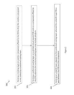 Spray coating methods are effective for applying conformal coatings to PCBs with complex geometries. These techniques use specialized nozzles and spray patterns to ensure uniform coverage over irregular surfaces, components of varying heights, and hard-to-reach areas. Automated spray systems can be programmed to adjust spray parameters based on the specific geometry of the PCB, ensuring consistent coating thickness and protection even in challenging areas like under components or around tall elements.- Spray coating techniques for complex PCB geometries: Spray coating methods are widely used for applying conformal coatings to PCBs with complex geometries. These techniques involve atomizing the coating material and directing it onto the PCB surface, allowing for uniform coverage even in hard-to-reach areas. Automated spray systems can be programmed to adjust spray patterns, pressure, and distance based on the specific board geometry, ensuring consistent coating thickness and protection of sensitive components while navigating around tall components and tight spaces.