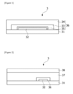 Multi-layer encapsulation approaches combine different materials to enhance moisture protection. These systems typically include a primary moisture barrier layer, an intermediate adhesion layer, and an outer protective layer. Each layer serves a specific function in the moisture control strategy, with the combined structure providing superior protection compared to single-layer solutions. This approach is particularly effective for sensitive electronic components requiring long-term reliability in humid environments.Expand Specific Solutions03 Desiccant incorporation techniques