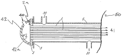 Composite materials combining metals, ceramics, or polymers offer superior corrosion resistance for heat exchangers operating in extremely harsh environments. These materials can withstand aggressive chemicals, high temperatures, and pressure fluctuations that would damage conventional materials. Fiber-reinforced polymers, ceramic matrix composites, and metal matrix composites provide excellent corrosion resistance while maintaining necessary thermal properties. The layered structure of these composites can be engineered to create barriers against specific corrosive agents while optimizing heat transfer efficiency, making them ideal for specialized applications in chemical processing and energy production.Expand Specific Solutions04 Surface treatment technologies for improved corrosion resistance