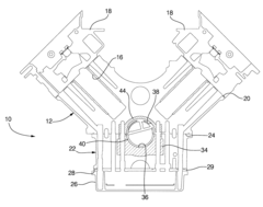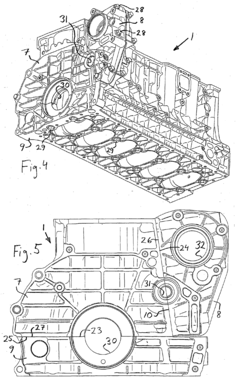 Structural reinforcement methods and mounting techniques for engine blocks that improve rigidity and stability during operation. These approaches include strategic ribbing patterns, material selection for optimal strength-to-weight ratios, and specialized mounting points that distribute loads evenly. Such designs minimize block distortion under thermal and mechanical stresses, maintaining critical tolerances between moving components and enhancing overall engine reliability.Expand Specific Solutions04 Active and adaptive mounting systems