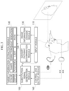 Advanced BCI platforms integrate multiple sensory substitution modalities into comprehensive systems that can adapt to user needs and environmental conditions. These platforms combine various input sensors (cameras, microphones, pressure sensors) with multiple feedback mechanisms (tactile arrays, bone conduction audio, haptic devices) controlled by AI algorithms that optimize the sensory substitution experience. The integration allows for seamless switching between different substitution modes based on the specific task requirements or environmental challenges, providing users with more flexible and effective sensory alternatives.Expand Specific Solutions05 Neurofeedback training for sensory substitution adaptation
