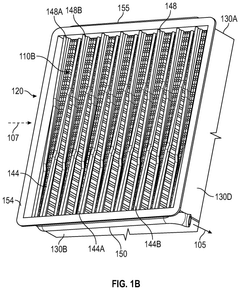 Hybrid heat exchangers combine multiple flow configurations (counterflow, crossflow, and parallel flow) to optimize heat transfer efficiency for specific applications. Multi-pass designs direct fluids through the exchanger multiple times, increasing residence time and heat transfer effectiveness. These sophisticated configurations can achieve higher overall thermal efficiency by leveraging the advantages of different flow patterns while minimizing their respective limitations.Expand Specific Solutions04 Enhanced surface technologies for heat exchangers