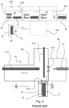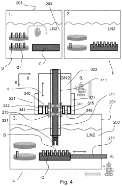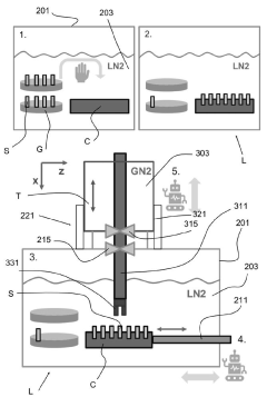 Technical Solution: FEI Co. (now part of Thermo Fisher Scientific) has developed advanced cryo-EM sample storage solutions that integrate with their microscopy systems. Their Vitrobot sample preparation system includes specialized storage capabilities that maintain samples at liquid nitrogen temperatures (-196°C) during transfer and storage. FEI's AutoGrid system provides standardized sample supports that improve handling efficiency and reduce contamination risks during storage. Their technology incorporates specialized dewars with automated inventory tracking systems that monitor temperature fluctuations and maintain sample integrity over extended periods. The company has also developed specialized transfer stations that minimize ice contamination during sample movement between storage and imaging systems, a critical factor for long-term sample stability[1][3].
