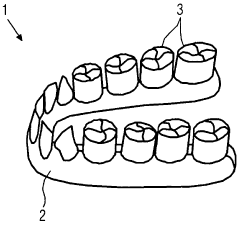- The use of computer-aided rapid prototyping methods, such as 3D laser lithography, for producing gum-colored base parts and teeth, allowing for precise modeling and integration of wear-resistant layers, with optional post-processing for color and mechanical fastening, enabling customized and durable artificial dentures.