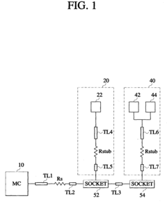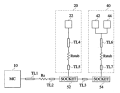 Memory controllers implement specialized architectures to manage signal integrity challenges in DDR memory systems. These controllers incorporate features such as adaptive equalization, timing calibration, and voltage reference adjustment to optimize signal quality. The controller architecture differs between DDR3 and DDR5, with DDR5 controllers featuring more sophisticated signal integrity management capabilities to handle higher data rates and more complex signaling requirements.Expand Specific Solutions03 On-die termination and impedance matching for DDR memory