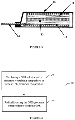 - A gel polymer electrolyte (GPE) composition is developed, incorporating a polymer network and a DES with a eutectic point of less than or equal to 25°C, formed by combining a DES solution with a monomer-containing composition and radically curing it to enhance ionic conductivity and cycle life.