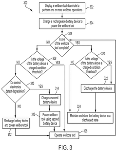 Technical Solution: Saudi Aramco has developed comprehensive solutions addressing battery degradation under high depth-of-discharge cycling, focusing on grid-scale energy storage applications. Their approach includes novel electrode designs with hierarchical porosity that better accommodate the mechanical stresses associated with deep discharge cycles. The company has pioneered advanced electrolyte systems containing proprietary additives that form more stable solid electrolyte interphase layers, reducing continuous electrolyte consumption during deep cycling operations. Their research has demonstrated that these formulations can reduce capacity fade by approximately 30% after 1000 deep discharge cycles compared to conventional systems. Additionally, Saudi Aramco has implemented sophisticated battery management systems that utilize machine learning algorithms to predict and mitigate degradation pathways in real-time, optimizing charging protocols based on usage patterns and environmental conditions. Their technology incorporates specialized thermal management solutions designed specifically to address the increased heat generation associated with high depth-of-discharge operations in extreme climate conditions.
