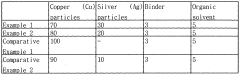 - A conductive ink composition is developed with metal powders or oxides dispersed in a medium containing film density improvers like Ti, V, and Ni salts, along with surface tension-adjusting agents and adhesion improvers such as silane coupling agents, to enhance film density and adhesion, while maintaining suitable viscosity for inkjet printing.