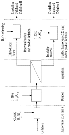 - A process involving dilution of spent liquors from sulphuric acid hydrolysis, followed by separation and recrystallization, allows for the isolation of crystalline sulphated cellulose II and concurrently produces crystalline sulphated cellulose I, using dilution with an aqueous diluent and subsequent heating or addition to water to precipitate the cellulose materials.