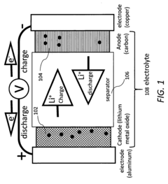 Solid-state electrolytes for anode-free batteries can be enhanced through the incorporation of nanoparticle fillers. These nanoparticles improve mechanical properties, ionic conductivity, and interfacial contact with electrodes. Various ceramic, oxide, or polymer nanoparticles can be dispersed within solid electrolyte matrices to create composite structures with optimized properties. The resulting solid-state electrolytes provide better performance in anode-free battery configurations by enabling stable lithium deposition and stripping.Expand Specific Solutions05 Nanoparticle-based artificial interphases