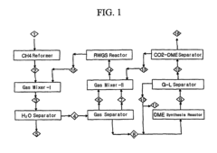 Methods for purifying and separating dimethyl ether from reaction mixtures or other compounds are described. These processes often involve distillation, adsorption, or membrane separation techniques to obtain high-purity dimethyl ether.Expand Specific Solutions05 Environmental and safety considerations