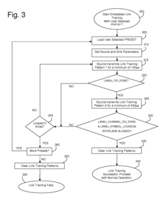 DisplayPort 2.1 implements sophisticated training states to establish optimal connections between source and sink devices. These training sequences allow devices to negotiate parameters such as link speed, lane count, and signal characteristics. The training process involves multiple states including clock recovery, channel equalization, and symbol lock, ensuring reliable high-bandwidth connections even in challenging signal environments. Failed training attempts trigger fallback mechanisms to establish connections at lower performance levels.Expand Specific Solutions03 Fallback mechanisms for compatibility