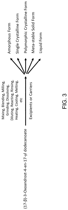 - A specific crystalline solid state form of (17-β)-3-Oxoandrost-4-en-17-yl dodecanoate with enhanced solubility and stability is developed, where at least 0.001% of the compound dissolves in an 8% Triton X100 aqueous solution within 30 minutes, and pharmaceutical compositions comprising this form are formulated for improved bioavailability.