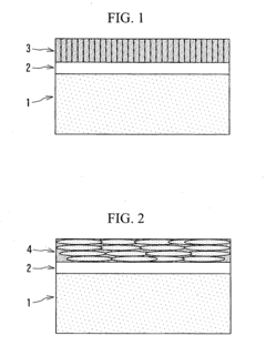 The bond coat layer between the ceramic top coat and the metal substrate is critical for the overall durability of thermal barrier coating systems. MCrAlY-type bond coats (where M represents Ni, Co, or a combination) or aluminide diffusion coatings provide oxidation resistance and improve adhesion. The composition, thickness, and surface preparation of the bond coat significantly affect the formation of the thermally grown oxide layer, which is crucial for coating longevity and preventing spallation during thermal cycling.Expand Specific Solutions04 Novel deposition techniques for improved coating performance