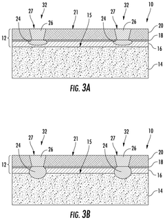 After application of repair materials, specific heat treatment and curing processes are essential to ensure proper bonding, densification, and performance of the repaired EBC. These processes may include controlled heating rates, specific temperature holds, and specialized atmospheres to prevent oxidation. Some advanced techniques incorporate laser sintering or microwave processing for localized repairs. Proper heat treatment is critical for achieving the desired microstructure and ensuring long-term durability of the repaired coating.Expand Specific Solutions05 Quality assessment and performance testing of repaired EBCs