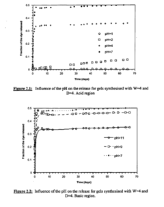 - Development of substantially monodispersed controlled release ceramic particles using a sol-gel process, where active materials are homogeneously dispersed and protected within the particles, allowing for controlled release through manipulation of particle properties and external environments, ensuring protection from degradation until release.