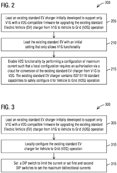 Various factors influence the adoption rate of Vehicle-to-Grid (V2G) technology in the market. These include consumer awareness, economic incentives, regulatory frameworks, and infrastructure readiness. The adoption rate can be accelerated through government policies, utility company partnerships, and demonstration projects that showcase the benefits of V2G technology. Market research indicates that adoption rates vary significantly across different regions based on these factors.- Market adoption factors for V2G technology: Various factors influence the adoption rate of Vehicle-to-Grid (V2G) technology in the market. These include consumer awareness, economic incentives, regulatory frameworks, and technological readiness. Understanding these factors is crucial for predicting and accelerating the adoption of V2G systems. Market research and analysis help identify barriers to adoption and strategies to overcome them, ultimately leading to increased implementation of V2G technology.