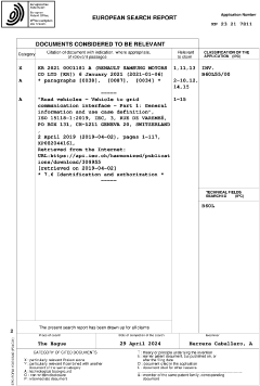 Consumer acceptance is a critical factor in V2G technology adoption. User concerns about battery life, convenience, privacy, control over vehicle charging, and perceived complexity of V2G systems influence adoption decisions. Educational campaigns, user-friendly interfaces, transparent compensation mechanisms, and addressing range anxiety can positively impact consumer acceptance. Studies show that early adopters are typically environmentally conscious consumers who understand the broader benefits of grid stabilization through V2G technology.Expand Specific Solutions05 Policy frameworks and regulatory support for V2G implementation