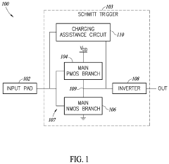 Innovations in Schmitt trigger designs focus on improving switching speed and response time. These implementations utilize advanced circuit topologies that reduce propagation delay while maintaining noise immunity. Techniques include optimized feedback paths, reduced parasitic capacitances, and specialized transistor configurations that enable faster state transitions. These high-speed designs are particularly valuable in applications requiring rapid signal processing and quick response to input changes.Expand Specific Solutions03 Noise immunity enhancement techniques