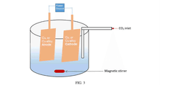 - 01 Metal-based catalysts for CO2 electroreductionMetal-based catalysts play a crucial role in the electrochemical reduction of CO2 to valuable products. Various metals such as copper, silver, gold, and their alloys exhibit different selectivity toward specific products like carbon monoxide, formate, or hydrocarbons. The catalyst structure, morphology, and composition significantly influence the reaction pathways and efficiency of CO2 conversion. These catalysts can be optimized through nanostructuring, alloying, or surface modification to enhance their catalytic performance.- Metal-based catalysts for CO2 electroreduction: Metal-based catalysts play a crucial role in the electrochemical reduction of CO2 to valuable products. These catalysts, including copper, silver, gold, and their alloys, offer selective pathways for converting CO2 into various products such as carbon monoxide, formic acid, methanol, and hydrocarbons. The catalytic performance can be enhanced by controlling the morphology, crystal facets, and surface properties of these metals, leading to improved efficiency and selectivity in CO2 valorization processes.