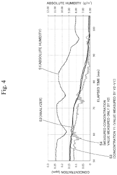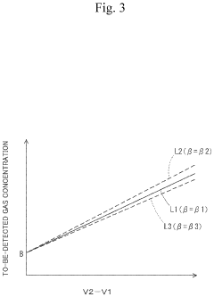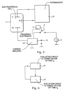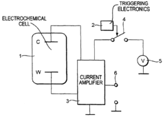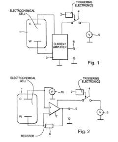 The speed at which electrochemical gas sensors respond to the presence of target gases and return to baseline after gas removal are critical performance metrics. Fast response times are essential for safety applications where immediate detection of hazardous gases is required. Recovery characteristics determine how quickly the sensor can detect subsequent gas events. These parameters are influenced by diffusion rates, electrode porosity, and electrolyte properties. Optimization techniques include membrane modifications and signal processing algorithms to improve temporal performance.Expand Specific Solutions03 Selectivity and cross-sensitivity analysis
