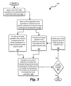 - The development of methods to generate proximity-corrected design layouts for photoresist, involving the estimation of in-feature plasma flux and edge placement error, using look-up tables constructed from computerized etch profile models, to optimize etch process parameters and improve accuracy.