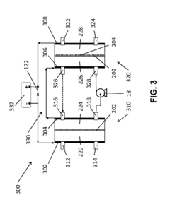 Electrochemical approaches to electrolyte rebalancing involve the use of additional electrochemical cells or specialized electrodes to selectively oxidize or reduce specific electrolyte species. These techniques can be integrated into the flow battery system to provide continuous or periodic rebalancing without requiring external chemical additions. Electrochemical rebalancing offers precise control over the state of charge and composition of the electrolyte solutions.Expand Specific Solutions03 Membrane and separator technologies for preventing imbalance