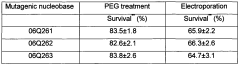 - The use of polyethylene glycol (PEG) mediated transformation to introduce mutagenic nucleobases into plant protoplasts, which enhances the efficiency of targeted mutagenesis by shielding DNA from cellular defenses and ensuring higher survival and regeneration rates, allowing for precise nucleotide modifications.