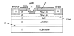 Gallium Nitride (GaN) power devices incorporate specific EMI/EMC mitigation techniques to reduce electromagnetic interference in high-frequency applications. These techniques include specialized shielding structures, optimized circuit layouts, and integrated filtering components that help contain electromagnetic emissions while maintaining the high switching speeds and efficiency advantages of GaN technology. The implementation of these mitigation strategies is crucial for meeting regulatory standards and ensuring reliable operation in sensitive electronic environments.- GaN power devices with EMI/EMC mitigation techniques: Gallium Nitride (GaN) power devices offer high efficiency and switching speeds but generate electromagnetic interference (EMI). Various mitigation techniques are employed to reduce EMI/EMC issues, including specialized circuit layouts, shielding, and filtering components. These techniques help maintain signal integrity while complying with electromagnetic compatibility standards, which is crucial for high-frequency applications where GaN devices are commonly used.