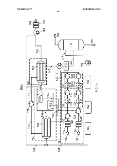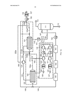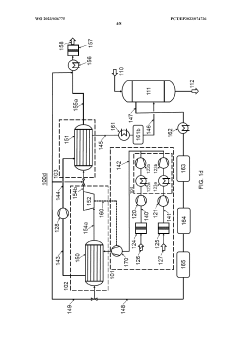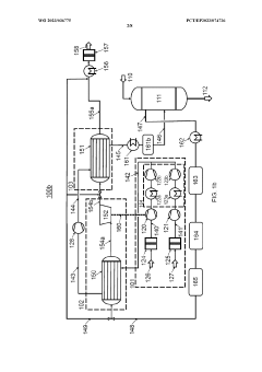 Technical Solution: China Petroleum & Chemical Corp. (Sinopec) has developed an innovative hydrogen peroxide production process that significantly reduces energy consumption and carbon emissions compared to the traditional anthraquinone process. Their approach utilizes a direct synthesis method employing palladium-based catalysts that enable the direct combination of hydrogen and oxygen to form H2O2. This process operates at lower temperatures (40-60°C) compared to the conventional anthraquinone process (40-80°C), resulting in approximately 35% less energy consumption. Additionally, Sinopec has implemented heat integration systems that recover and reuse thermal energy throughout the production cycle, further reducing the overall energy footprint by up to 25%. Their carbon footprint analysis indicates a reduction of CO2 emissions by approximately 40% per ton of hydrogen peroxide produced, primarily due to the elimination of multiple reaction and extraction steps required in the anthraquinone process.