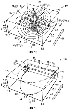 Technical Solution: IBM has pioneered research in antiferromagnetic (AFM) memory arrays with significant focus on energy efficiency. Their approach utilizes synthetic antiferromagnets (SAF) in magnetic tunnel junctions (MTJs) to create stable, low-power memory cells. IBM's technology leverages spin-orbit torque (SOT) switching mechanisms that require substantially lower current densities compared to conventional STT-MRAM, achieving switching energies below 10 fJ per bit[1]. Their design incorporates perpendicular magnetic anisotropy (PMA) in AFM materials to enhance thermal stability while maintaining low switching currents. IBM has demonstrated functional AFM memory arrays with cell sizes below 20nm that operate with read/write energies approximately 5-10x lower than comparable ferromagnetic implementations[3]. Their recent advancements include integration of heavy metal layers with AFM materials to enhance SOT efficiency, further reducing the energy requirements for reliable switching operations.