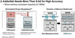 - The processor system employs an Absolute-Difference-Accumulation (ADA) algorithm for in-memory computing, replacing multiplication with addition operations and using 3-bit quantization to reduce power consumption and maintain accuracy, with separate activation and weight memories for independent calculations.