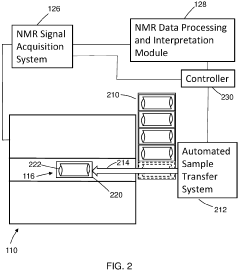 Technical Solution: Hitachi has developed a comprehensive approach to high-throughput NMR that focuses on integration with industrial processes. Their solution centers around the concept of "connected NMR" where instruments are fully incorporated into production workflows. Hitachi's system features compact permanent magnet designs that can be installed directly in production environments, bringing analysis closer to the point of need rather than requiring samples to be sent to a central laboratory[1]. Their technology incorporates rapid pulse sequence optimization that automatically adjusts parameters based on sample type, reducing setup time between different product analyses. For industrial applications, Hitachi has implemented real-time monitoring capabilities that allow continuous sampling from production streams with automated data analysis to detect deviations from quality parameters. Their systems include specialized probes designed for specific industrial matrices that optimize signal-to-noise ratio for challenging samples. Hitachi's software platform provides automated decision support, translating NMR results into process control recommendations without requiring operator interpretation[2]. The company has also developed miniaturized NMR technology that enables multiple units to be deployed throughout a production facility, creating distributed analysis networks that significantly increase overall throughput while providing spatial resolution of process variations.