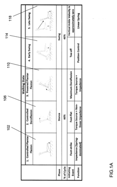 - The development of dynamic lower-extremity prosthetic, orthotic, and exoskeleton systems that detect terrain and adapt by optimizing mechanical characteristics and controlling actuators based on activity, terrain texture, and user parameters, using inertial measurement units and sensors to adjust impedance and torque in real-time, allowing for terrain-adaptive behavior.