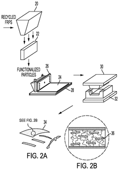 - A method involving grinding used CFRPs to produce ground particles, functionalizing them, and dispersing these particles into a base resin with high glass transition temperature epoxy, which are then molded and cured to create recyclable CFRP parts with enhanced mechanical properties and dimensional stability, enabling cost-effective and efficient recycling.
