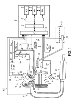 Advanced control strategies for managing boost pressure in turbocharged GDI engines are essential for optimizing performance across various operating conditions. These strategies involve electronic control units that adjust wastegate operation, variable geometry turbocharger settings, and fuel injection parameters based on engine load, speed, and environmental conditions. Proper boost control prevents knock, ensures efficient combustion, and maximizes power output while protecting engine components.Expand Specific Solutions04 Thermal management in turbocharged GDI engines