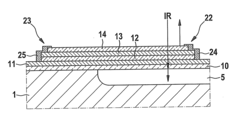 - 01 Protective coatings and encapsulation for thermopilesVarious protective coatings and encapsulation methods are employed to enhance thermopile durability. These include hermetic sealing, polymer encapsulation, and specialized protective layers that shield the thermopile elements from environmental factors such as moisture, dust, and corrosive substances. These protective measures significantly extend the operational lifespan of thermopiles by preventing degradation of the thermoelectric materials and electrical connections.- Protective coatings and encapsulation techniques: Various protective coatings and encapsulation methods are employed to enhance thermopile durability. These include hermetic sealing, polymer encapsulation, and specialized coating materials that shield the thermopile elements from environmental factors such as moisture, dust, and corrosive substances. These protective measures significantly extend the operational lifespan of thermopiles by preventing degradation of the thermoelectric materials and electrical connections.
