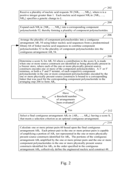 - A method and system for rapidly assembling engineered nucleic acid constructs by interpreting nucleic acid requests, rearranging component polynucleotides, and using a database of physically present components to identify optimal arrangements, with primer pairs generated to amplify missing components, thereby reducing the need for custom oligonucleotide primer synthesis and streamlining the construction process.