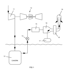 - Utilizing a compressed air energy storage (CAES) facility with underground caverns to supply and store compressed air for testing, allowing for efficient energy use, reduced equipment costs, and increased testing duration, and incorporating a non-vitiating heat exchanger or air turbine to preheat air for accurate component testing.