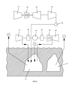 Technical Solution: Southwest Research Institute (SwRI) has developed comprehensive environmental testing capabilities for turbine engines through their Propulsion and Energy Machinery Section. Their approach integrates multiple environmental factors simultaneously, including temperature cycling (-65°F to +350°F), altitude simulation (up to 100,000 feet), humidity control (10-98%), and vibration testing. SwRI's proprietary HEDGE (High-Efficiency Durability and Greenhouse gas Emissions) testing methodology evaluates engine performance under various environmental conditions while monitoring emissions. Their facilities feature specialized test cells with advanced instrumentation capable of capturing over 1,500 data points per second, enabling real-time analysis of engine response to environmental stressors. SwRI has pioneered accelerated life testing protocols that compress years of environmental exposure into weeks of testing through carefully calibrated stress amplification. Their test facilities include capabilities for foreign object damage (FOD) simulation, salt fog exposure for corrosion testing, and electromagnetic interference (EMI) evaluation to ensure engine control systems remain reliable under adverse environmental conditions.