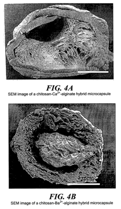 - A biocompatible immobilized catalytic system is developed using a core-shell structure with a neutral or anionic alginate core and a cationic chitosan shell, providing controlled permeability and mechanical strength, preventing immune rejection and enzyme leakage, and utilizing Ba2+ cross-linking to create a solid core for enhanced stability.