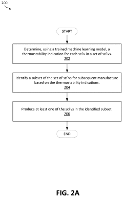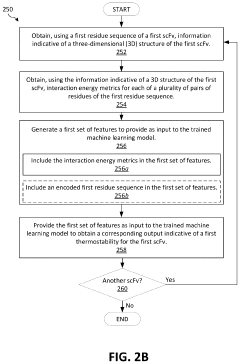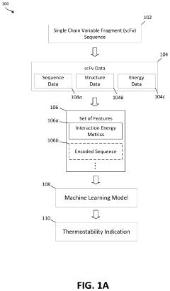 - A method using a trained machine learning model that takes into account the three-dimensional structure and interaction energy metrics between residues of scFvs, generating features such as interaction energy matrices and encoded sequences to predict thermostability, allowing for the identification of thermostable scFvs for subsequent production.